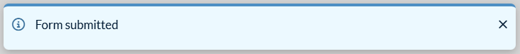 For example, if you have the following configuration in a Button component, the record is saved and a blue popup box appears notifying the user that the form has been submitted: